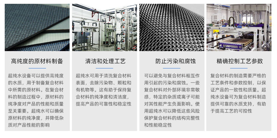 超純水設備可以提供高純度的水質,用于制備復合材料中所需的原材料。在復合材料的制造過程中,原材料的純凈度對產品的性能和質量至關重要。超純水可以確保原材料的純凈度,并降低雜質對產品性能的影響