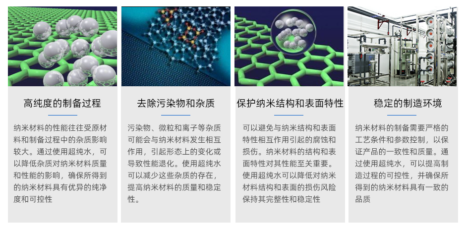 超純水設備可以提供高純度的水質,用于納米材料的制備過程。納米材料的性能往往受原材料和制備過程中的雜質影響較大。通過使用超純水,可以降低雜質對納米材料質量和性能的影響,確保所得到的納米材料具有優異的純凈度和可控性