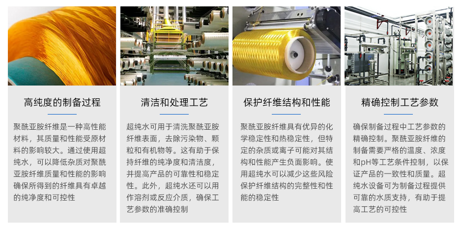 聚酰亞胺纖維是一種高性能材料,其質量和性能受原材料的影響較大。通過使用超純水,可以降低雜質對聚酰亞胺纖維質量和性能的影響,確保所得到的纖維具有卓越的純凈度和可控性