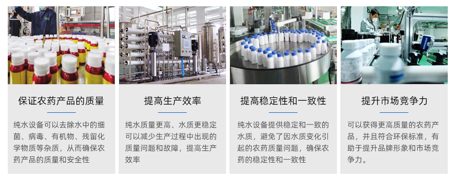 農藥是一種高毒性化學制品,其生產過程需要使用大量的水。在農藥生產過程中,用水的質量和純度不僅直接影響產品的質量和效果,而且可能對環境和人體健康造成潛在的危害。因此,農藥生產要使用純水設備,以保證用水的質量和純度,降低生產過程中的安全風險