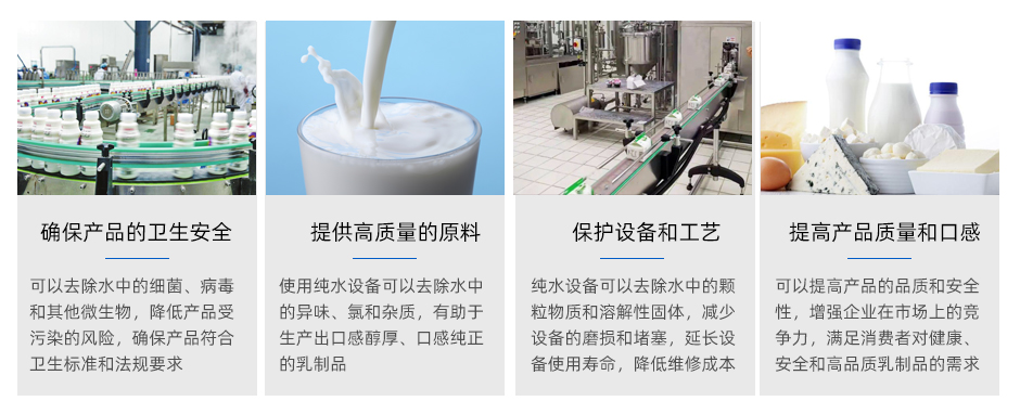 乳制品是一類以牛奶或其他動物乳汁為主要原料,經過加工制成的食品,如酸奶、黃油、芝士等。在乳制品生產過程中,水源可能含有各種有害物質,包括細菌、微生物、重金屬和化學物質等,這些物質可能會對乳制品的質量和安全性造成影響,水中硬度和鐵銹等雜質,這些物質會影響到乳制品的口感和品質