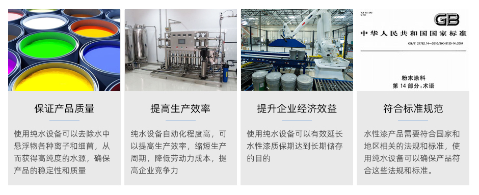 水性漆生產需要使用大量的水,而這些水源中可能含有各種雜質、離子和微生物等,如果直接使用這些未經處理的水,容易對產品質量和生產環境產生影響。使用純水設備可以去除這些雜質和污染物,從而獲得高純度的水源,保證產品質量和生產環境衛生。