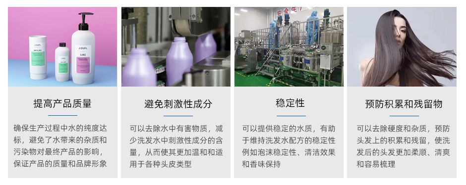 洗發水中含有各種活性成分和香料等物質,而這些物質在生產過程中需要用到大量的水。使用純水設備可以確保生產過程中使用的水的純度達到標準,避免了水帶來的雜質和污染物對最終產品的影響,保證產品的穩定性和質量。
