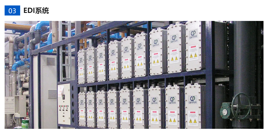 EDI的作用就是通過除去電解質(包括弱電解質)的過程,將水的電阻率從0.05~1.0MΩ·cm提高到5~16MΩ·cm